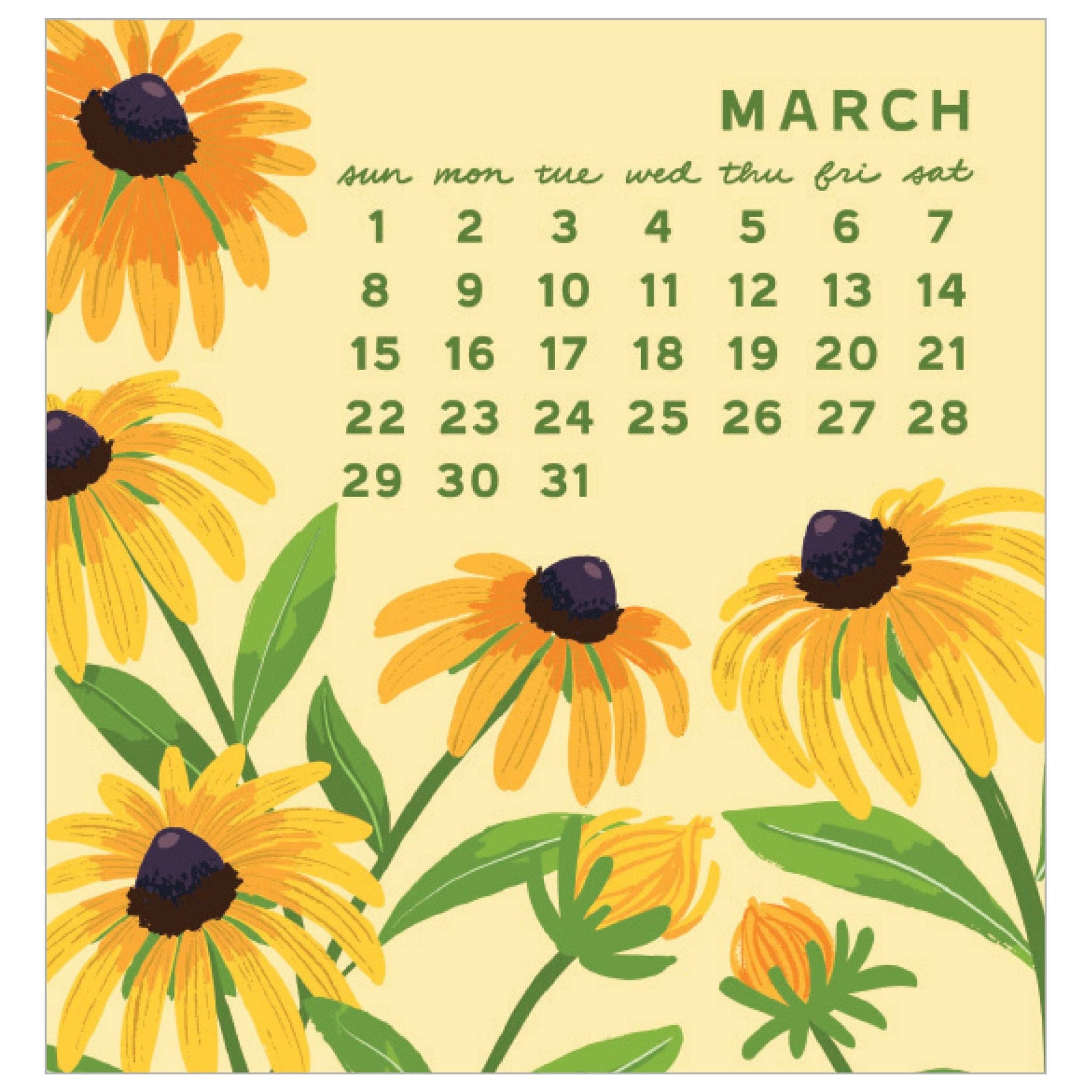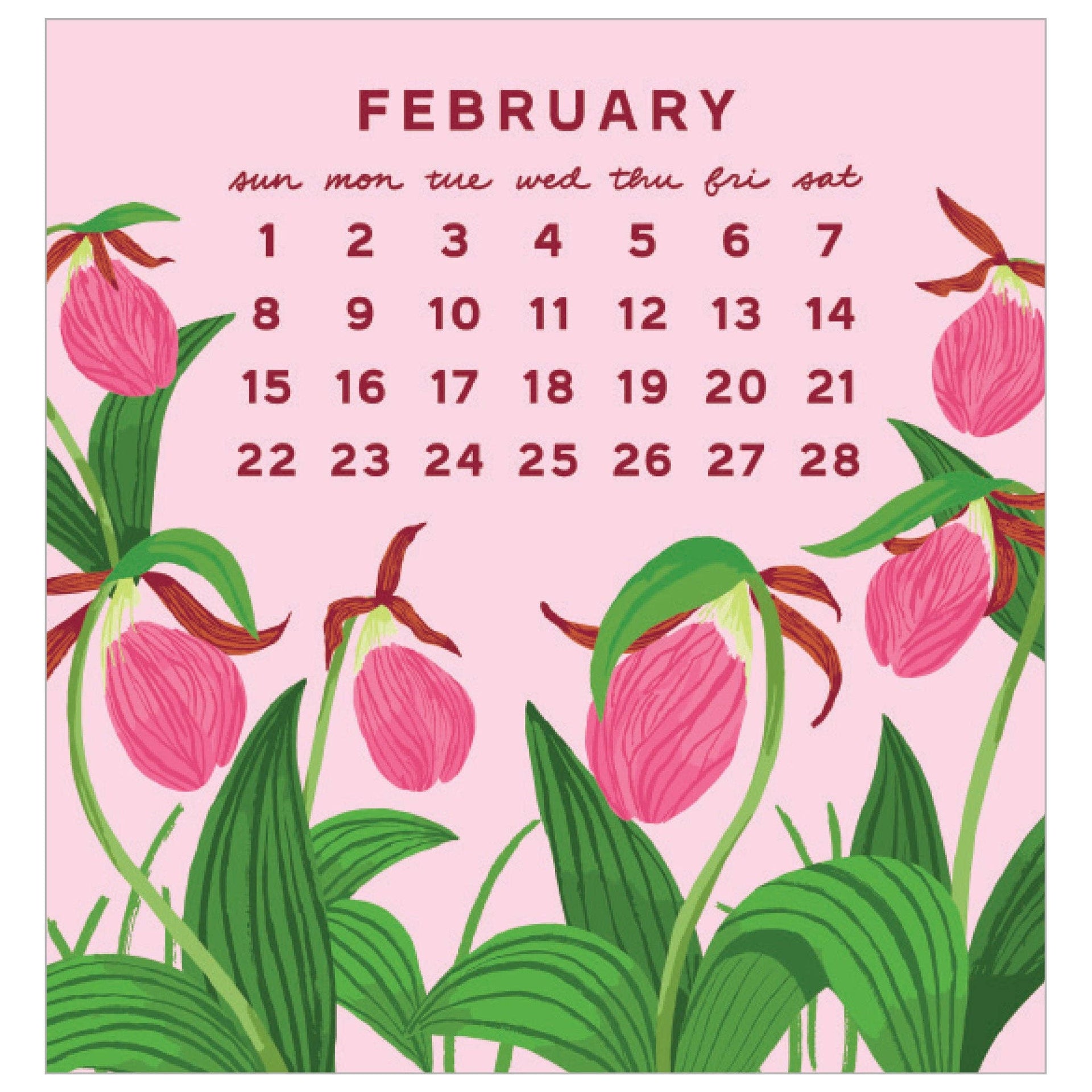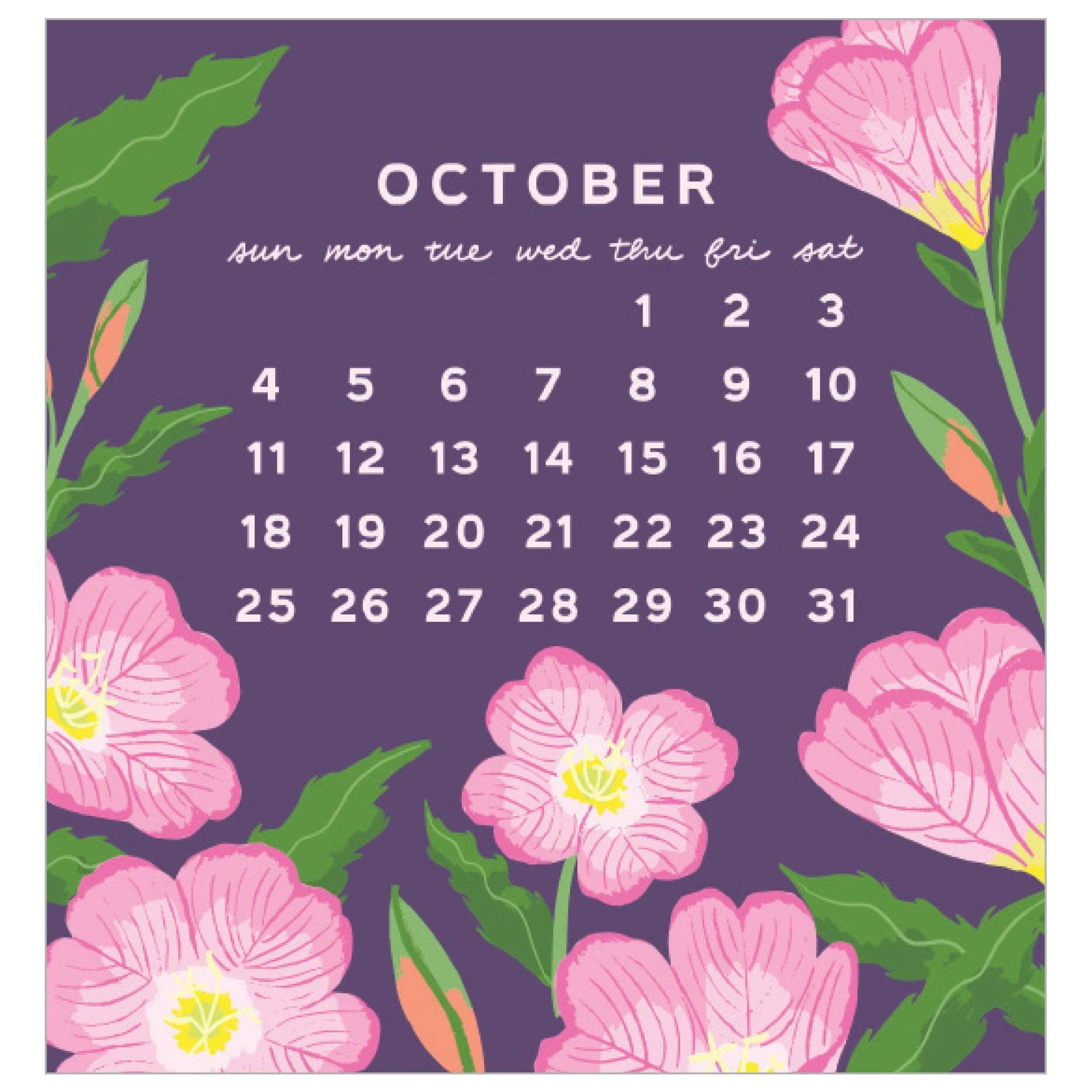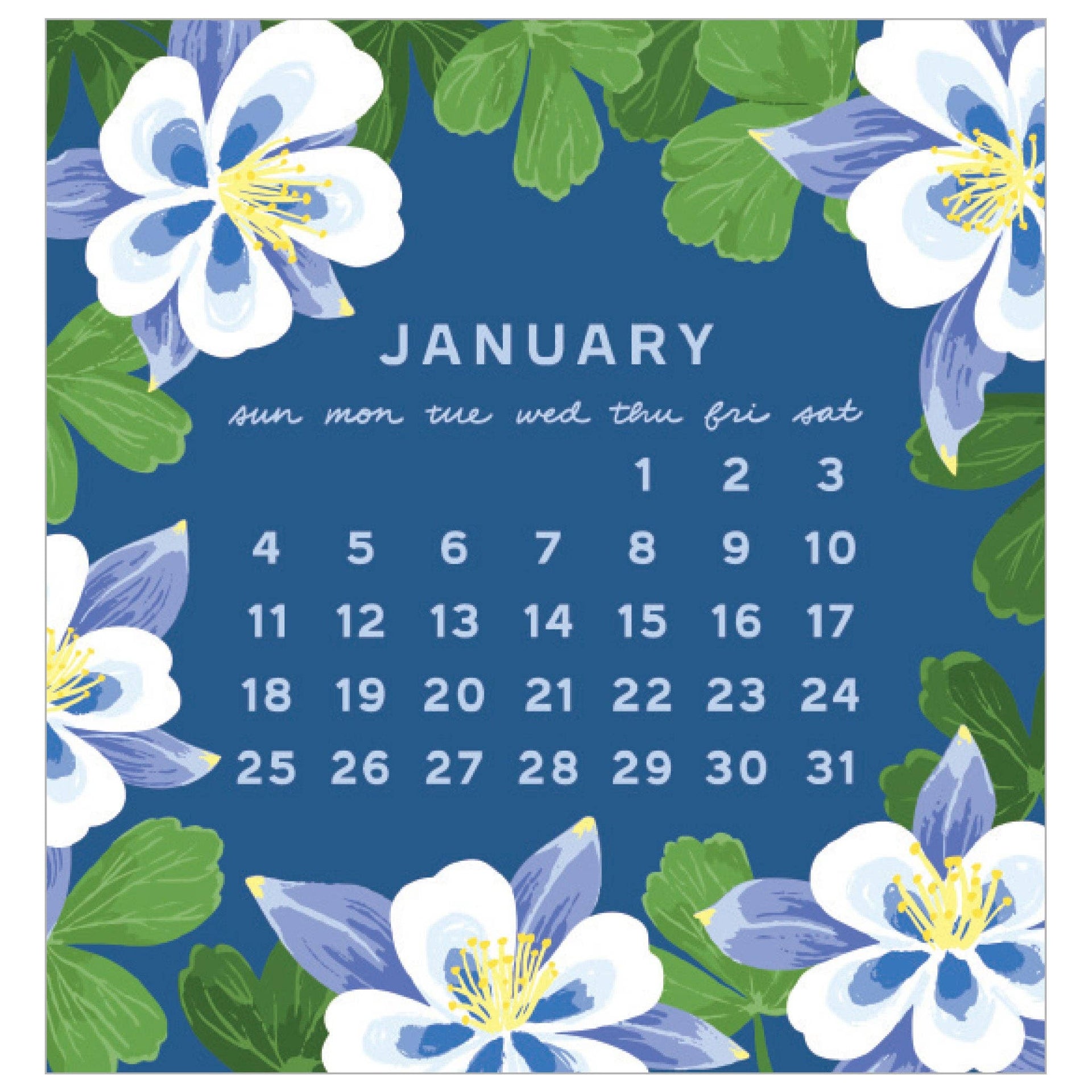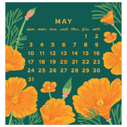Our Mini Calendar is one of our best sellers year after year! The colorful desk calendar is suitable for small spaces and its case doubles as a stand. Cheerful illustrations liven up any workspace and the small size makes it a perfect stocking stuffer or host gift. Available to ship May 2025 or later. description: Vibrant florals are the highlight of each page of our fan-favorite mini calendar. This unbound calendar comes in a clear case that doubles as a stand. format: 3.5 x 3.7 inch pages with clear display case printing: offset-printed in Massachusetts paper: FSC-certified cover made from 50% post-consumer waste packaging: packaged in a CD-style clear case that folds back into a stand origin" USA item no.: C2732