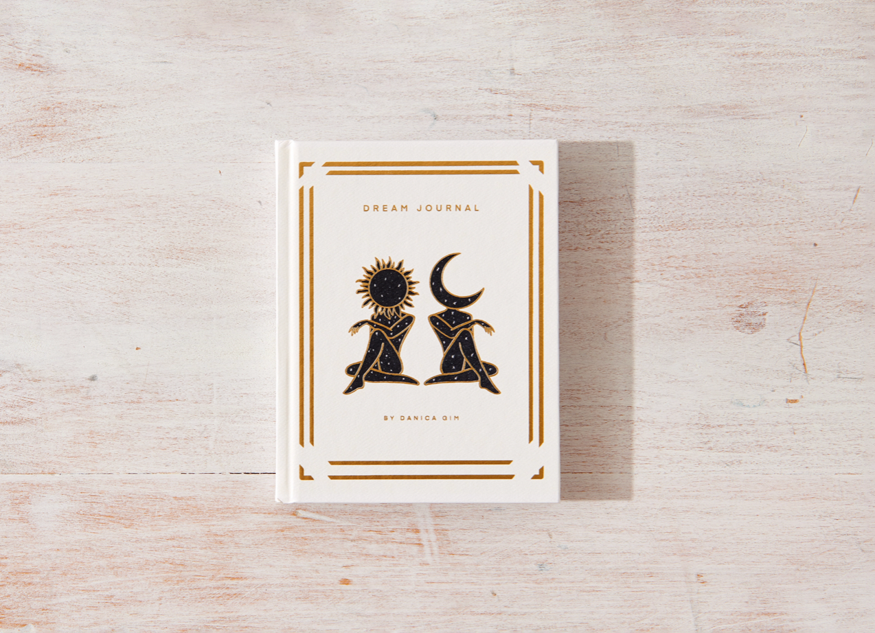 By Danica Gim Track and reflect on your dreams with this adorable Dream Journal created by visual artist Danica Gim. This journal is perfectly sized for travel: small enough to fit in a purse or tuck under a pillow. Prompts are included to help you recall and gain wisdom from your dreams. Hardcover journal with prompts.