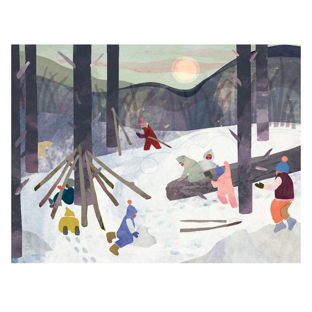 This print is a scene of children at play (Hartley folks will know this particular spot on the woods as Fairmont Forest), fully alive in nature, adventuring in all the creative possibilities among the trees.
