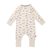 Piggies out with easy-on, easy-off, coveralls! A soft, stylish wardrobe staple ideal for indoor or outside play, and snoozin the night away. Perfect for nibbling toes, crawling, or going to market. Simply open the outfit, insert baby, and the smart magnetic fasteners practically close themselves! Machine wash as directed.