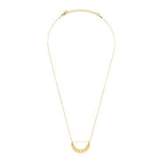 This crescent is threaded on 16" barley chain with a 2" extender so you can adjust it to the perfect length! 14k gold over brass. Designed and assembled in our Sonoma California studio.