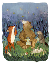Firefly Night Print is a reproduction of my original gouache painting; a whimsical night scene of four friends - bear, rabbit, fox, and beaver - catching fireflies while gazing up in wonder at the illuminated night sky. Printed on Premium Presentation Matte Paper using high quality inkjet inks and signed on the back. Your print will be carefully packaged with an archival backing board in a protective cellophane cover, then wrapped in bubble wrap all inside a rigid mailer to ensure it's protected during shipping. ***Wooden frame not included*** All of my prints are currently available in either 8”x10” or 11”x14” - please choose your desired size. I attempt to ship out all orders as quickly as possible, but ensure that everything is shipped within a maximum of three business days. P-4049/P-5049 Thank you for shopping at Little Pine Artistry!