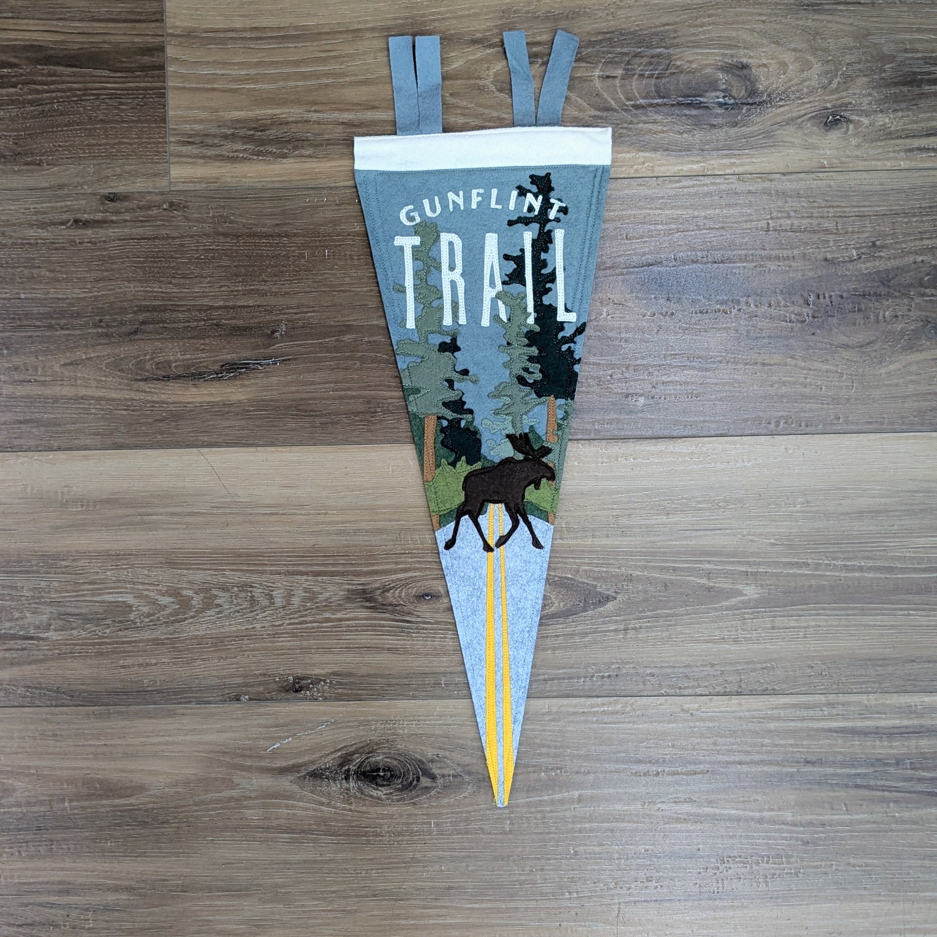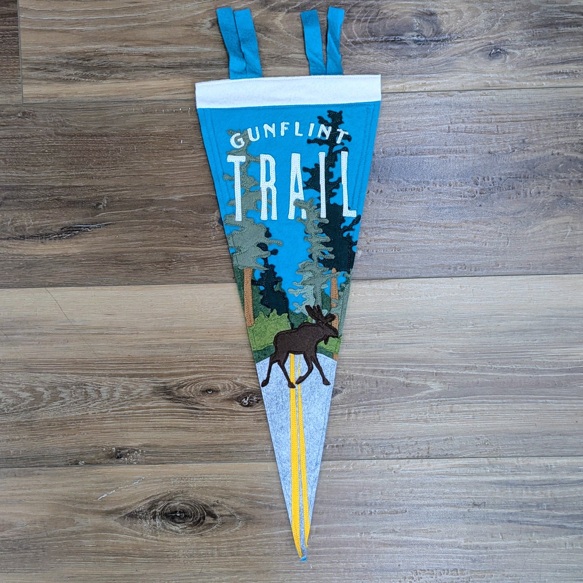 Handmade Gunflint Trail Pennant by Yoho & Co. Pennant company. This design was made exclusively for us here at The Big Lake!
