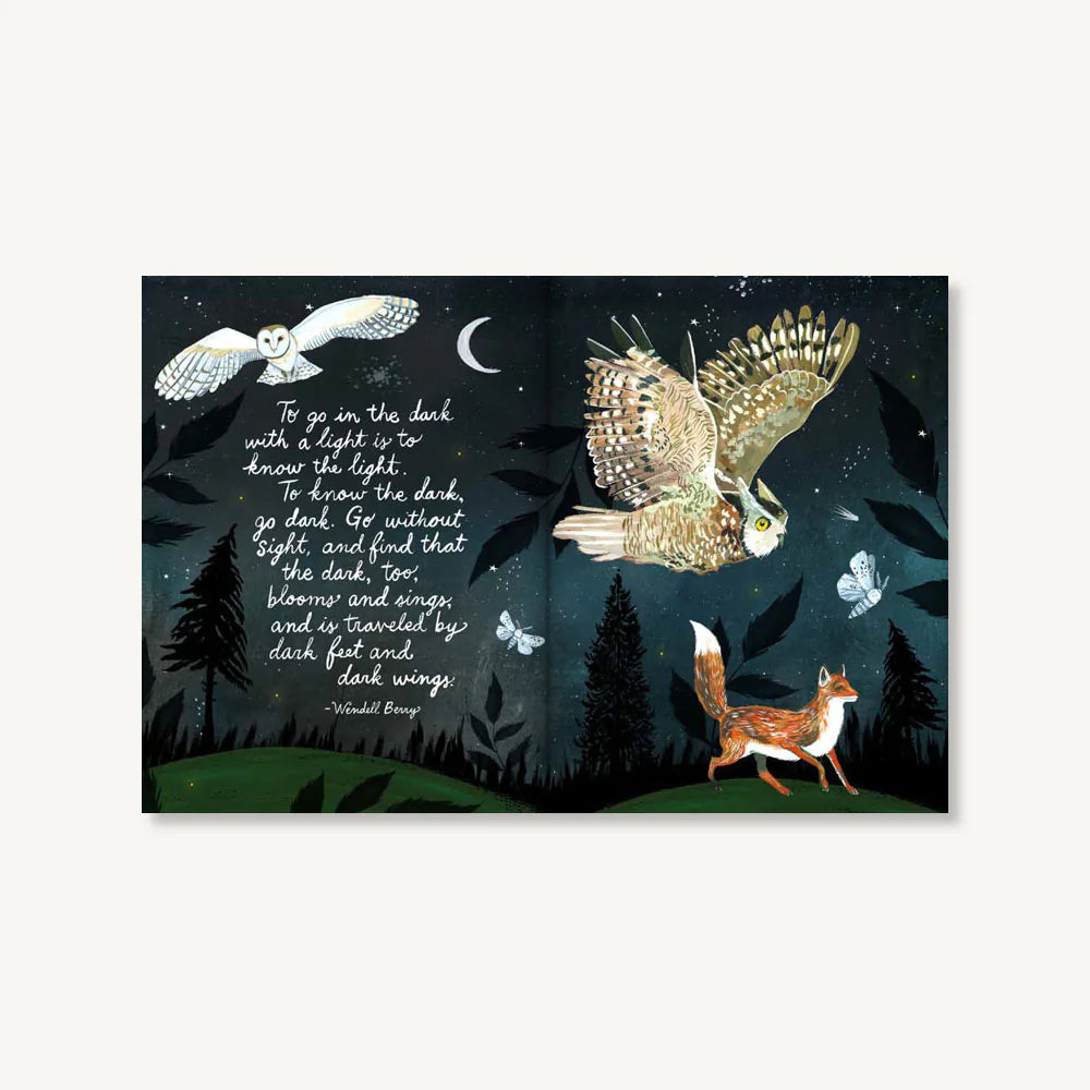 Discover the world that awakens after everyone else has gone to sleep. In this lavishly illustrated book, New York Times-bestselling artist Katie Daisy explores the mystery and magic of the nighttime. Join her on a journey from dusk to dawn, complete with quotes, poems, meditations, field guides to different nocturnal flora and fauna, and charts that map out the cosmos. From night-blooming flowers to cozy campfires, from moon baths to meteor showers, Katie Daisy's lush illustrations capture the beauty that comes to life in the darkness.