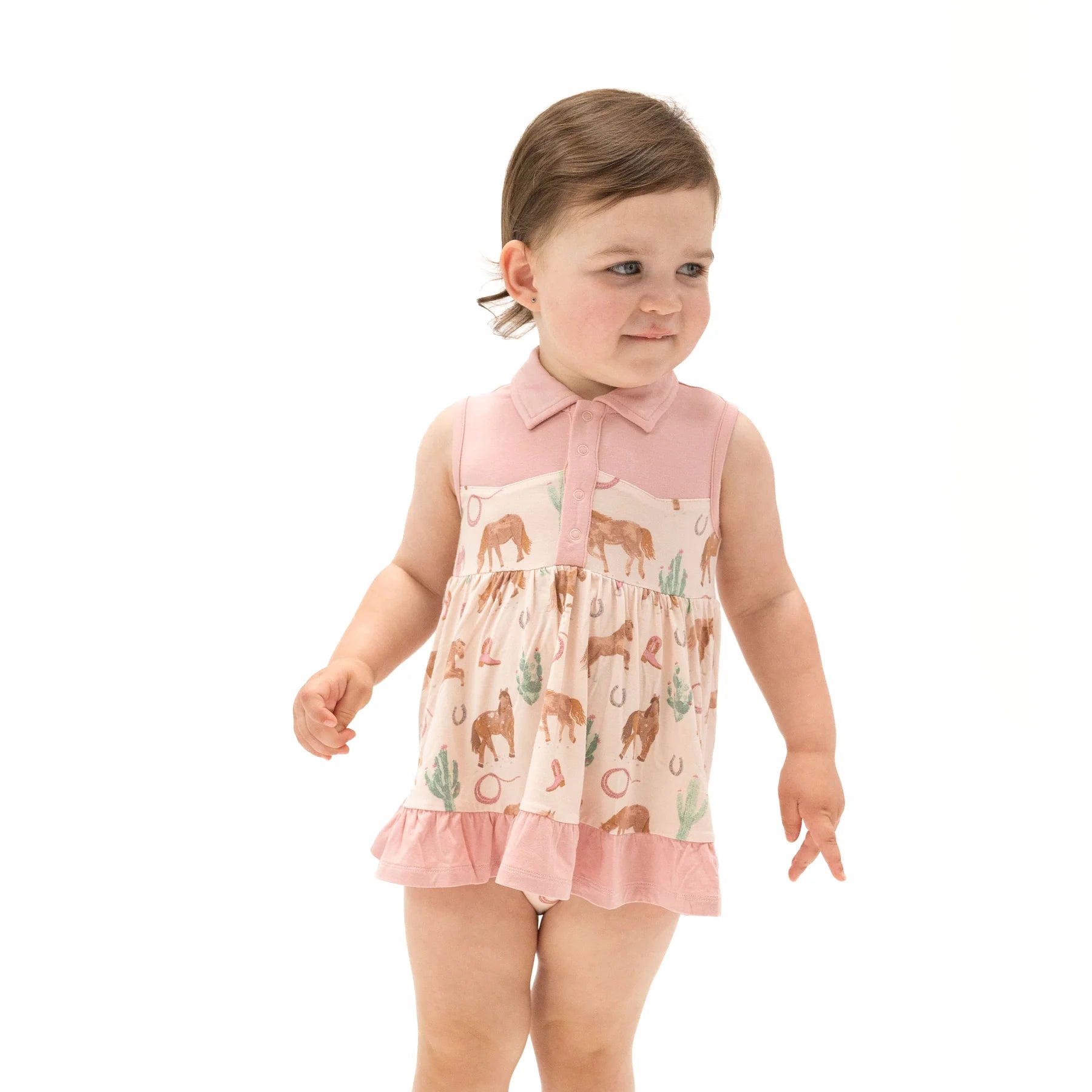 Your little cowgirl will be ready to saddle up in this adorable Cowboy Bodysuit Dress! 🤠💖 #BabyFashion #WesternStyle #CowgirlVibes