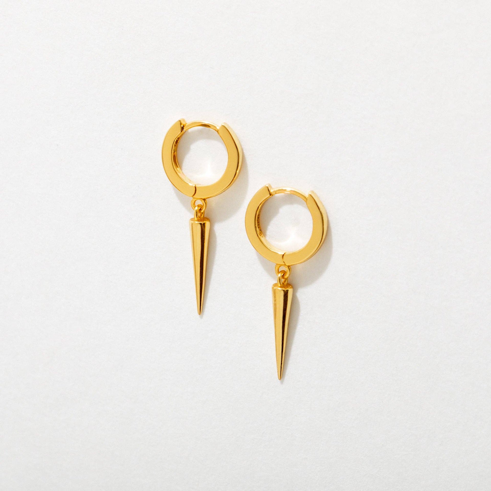 Spike Drop Huggie Hoops - 18K Gold Plated or Sterling Silver