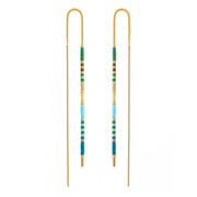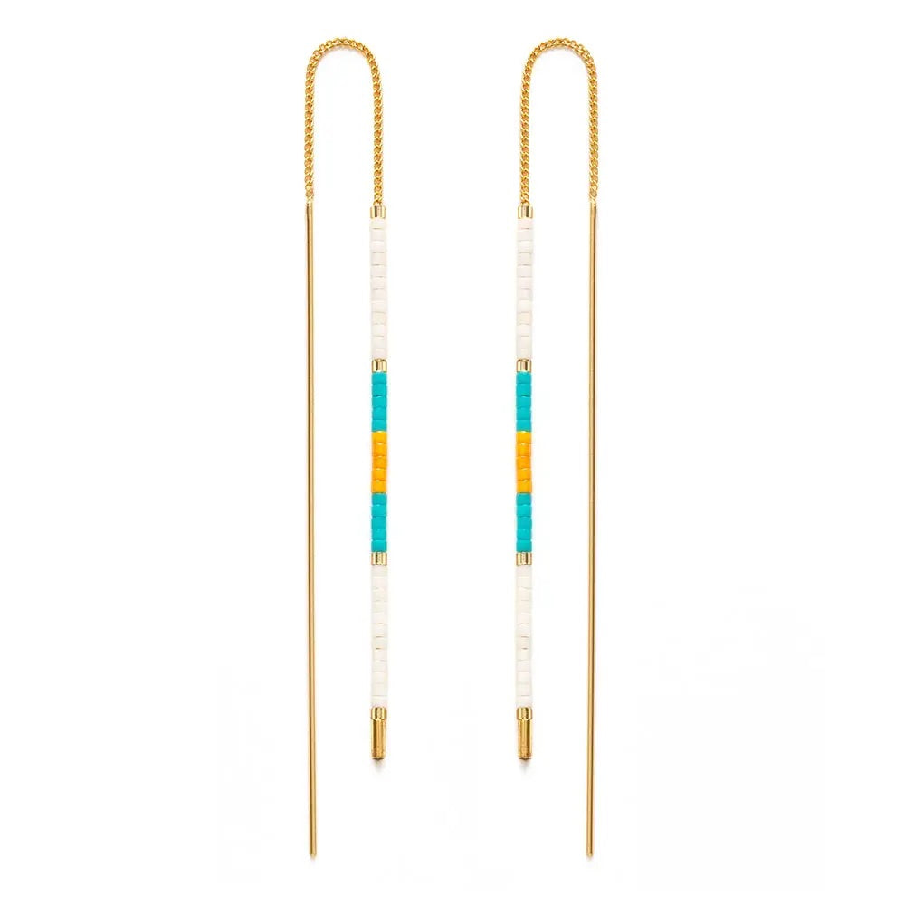 We are very excited about these new earrings! They combine our best selling threaders with our best selling Miyuki seed bead earrings. They hang 3.25" so they are swishy and sexy. Great for summer, and elegant enough for a dressy night out.