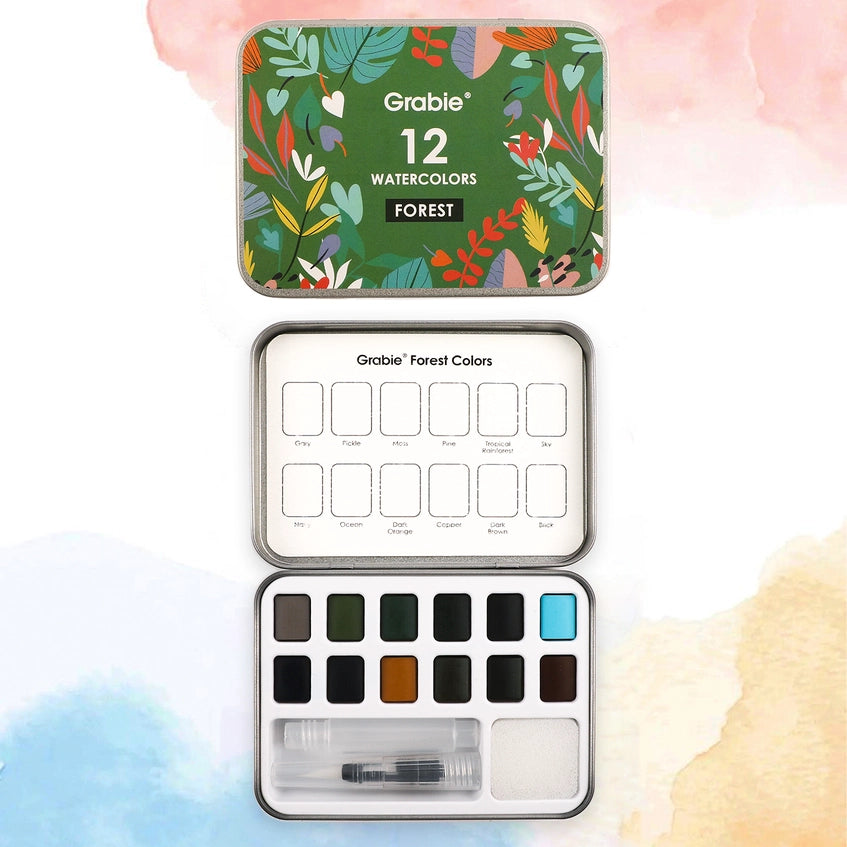 Introducing the Grabie Watercolor Pocket Set, Forest Colors – a compact collection of 12 serene shades inspired by lush woodland tones. With upgraded packaging and extra accessories, it’s ready for your next creative journey.