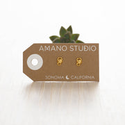 Tiny 1cm long scorpion stud earrings. Inspired by the desert, Georgia O'Keeffe and the Wild Wild West. Perfect for a Western theme earring stack. Made of 14k gold plated brass. Designed and assembled in our Sonoma California studio.