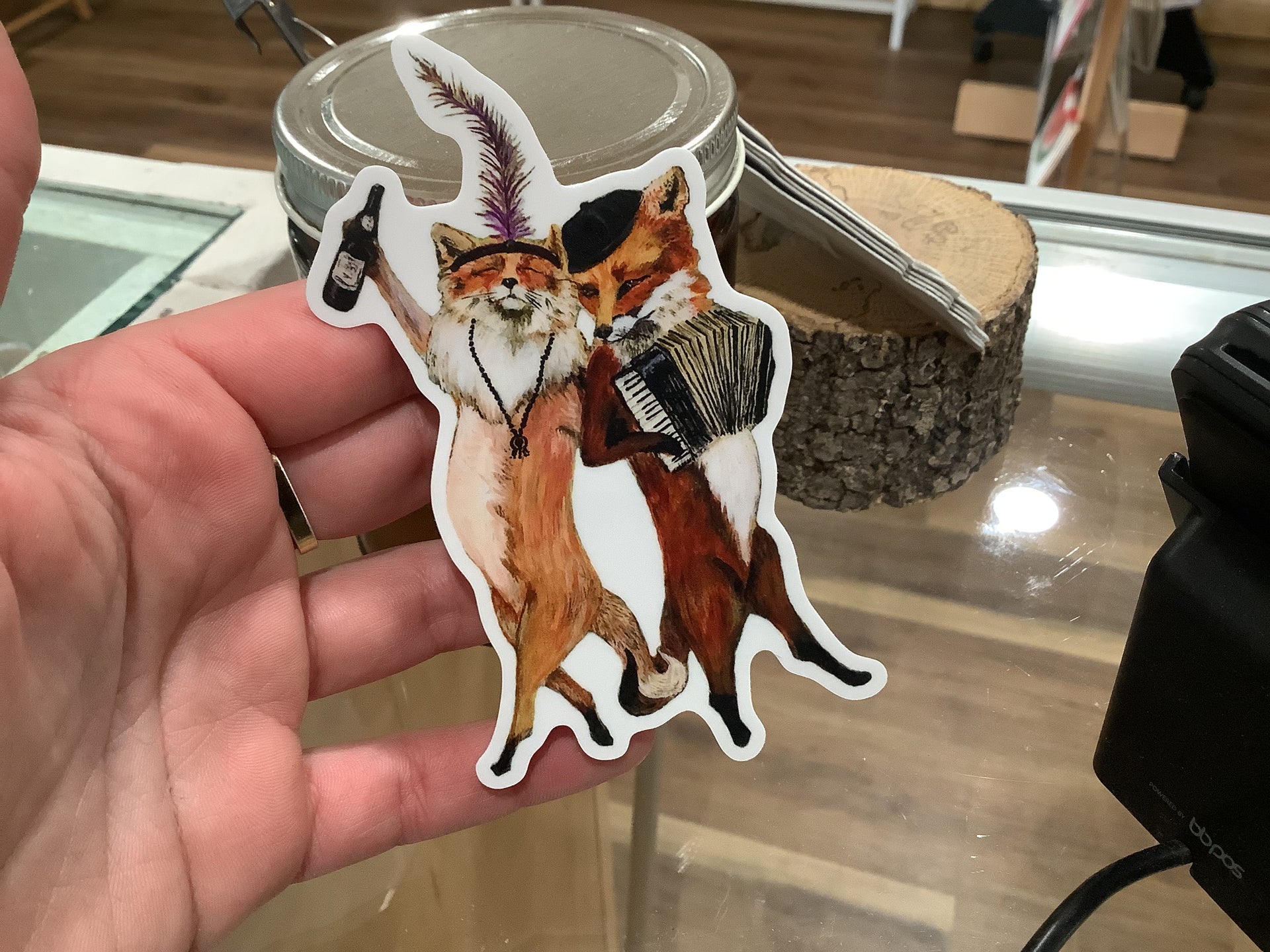 My vinyl die-cut stickers withstand the test of time and all kinds of weather. These friends are from my original paintings and bring all of the color with them!