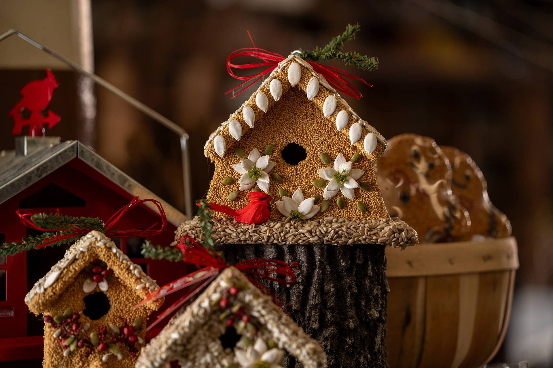 Hand decorated with pumpkin seeds and Canela berries. Beautiful Christmas gift, perfect for parents or grandparents. Dimension: 8"x4.75"X6.5". Packaging information: packaged in a clear bag with a garland twist tie.