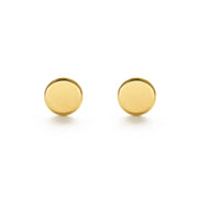 Simple but not basic! These 1/4" dots are the epitome of minimalism. They are made of recycled sterling silver or gold plated brass. We do a heavy (7-10 mil) 24k gold plate so it is long lasting.