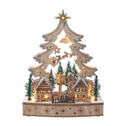 Create a festive centerpiece with the 12.6-inch Battery Operated Lighted Christmas Tree Village. This charming decoration includes miniature houses nestled around a central, brilliantly lit Christmas tree, offering a compact yet delightful holiday village setting.
