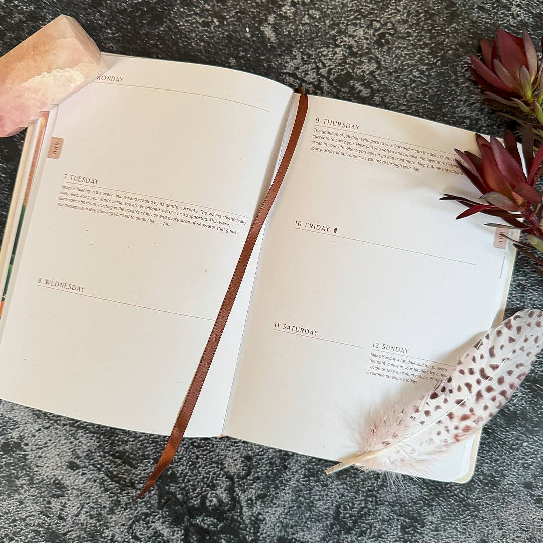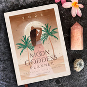 [AMP] The 2026 Moon Goddess Planner Calendar is an invitation to let the lunar energy of the moon guide, inspire, and transform your life this year. Nicci Garaicoa, speaker and author of the Moon Goddess Oracle, has created this planner to help others connect to the strength, wisdom, and beauty that she finds in moonlit beaches and ocean magic. With her guidance you'll learn to Invoke the magic and medicine of 12 sacred goddesses of the sun, sand, shells, and more. With tips on using crystals, essential oils, affirmations, rituals, and songs, you'll learn to connect the ocean's mysteries, your inner magic, and the moon's cycles for a radiant and joyful year. Features include: •Planner Size: 6" x 8.5" (12" x 8.5" open) •Sturdy softcover •Ribbon bookmark •12-month planner (January-December 2026) •Moon phases, based on Universal Time •Weekly spreads with reflection questions and journal prompts •Monthly pages introducing a beach goddess to guide your month •Beautiful