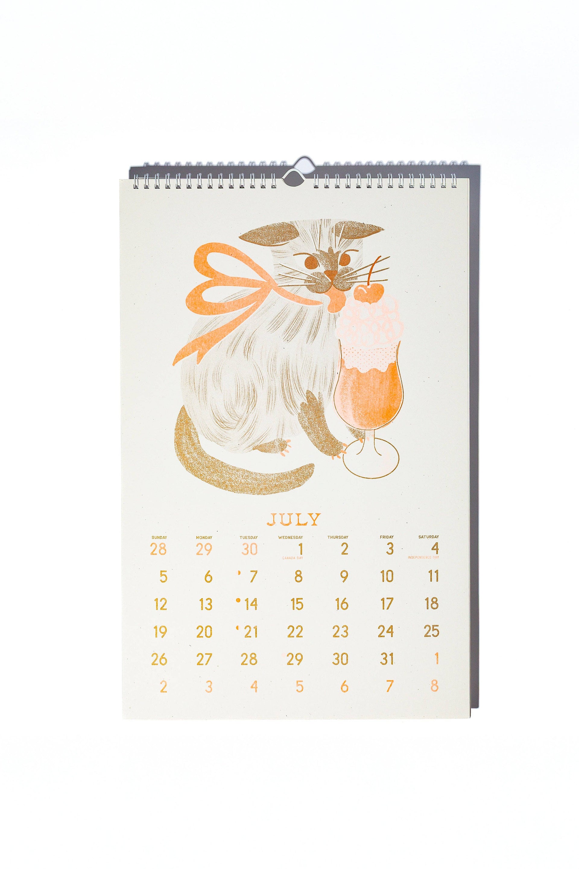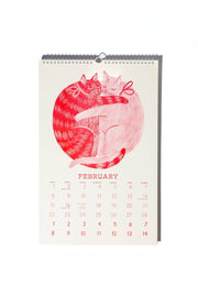 These gorgeous, limited edition risograph calendars are like having a new piece of art every month — and the illustrations can be trimmed out to frame as art later on too. Twelve cats, lovingly illustrated and loving life as they usher us through the coming year. A sell-out since 2021, the annual cat calendar will go quickly again, so make sure to order early to avoid disappointment because there will be no reprints! * 11"x17" wire-bound with hanging loop * Major US holidays and lunar phase calendar * Includes template for trimming monthly illustrations into frame-able 10"x10" prints at the end of the year. * Eco-friendly, vegetable-based ink * Printed on 100% recycled, FSC-certified fiber-fleck cardstock