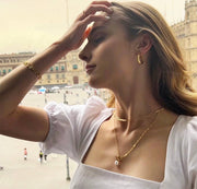 This Cuban Chain Bracelet has a great weight and is the perfect addition to any bracelet stack. Alone it is hefty enough to make its own statement. The bracelet measures 7" and is made of brass with a high quality 14k gold plate. Designed and assembled in our Sonoma California studio.