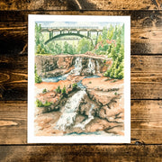 A Giclée reproduction print on 100% cotton rag, 230 gsm paper featuring Gooseberry Falls in Minnesota. The paper size is either 8x10”, 11x14”, or 16x20”. The 1/2” white border allows room for matting and framing (and is included in the print size listed). Purchase does not include frame or mat. All Giclée reproduction prints are printed on fine matte acid-free, archival paper by a trusted fine art printer.
