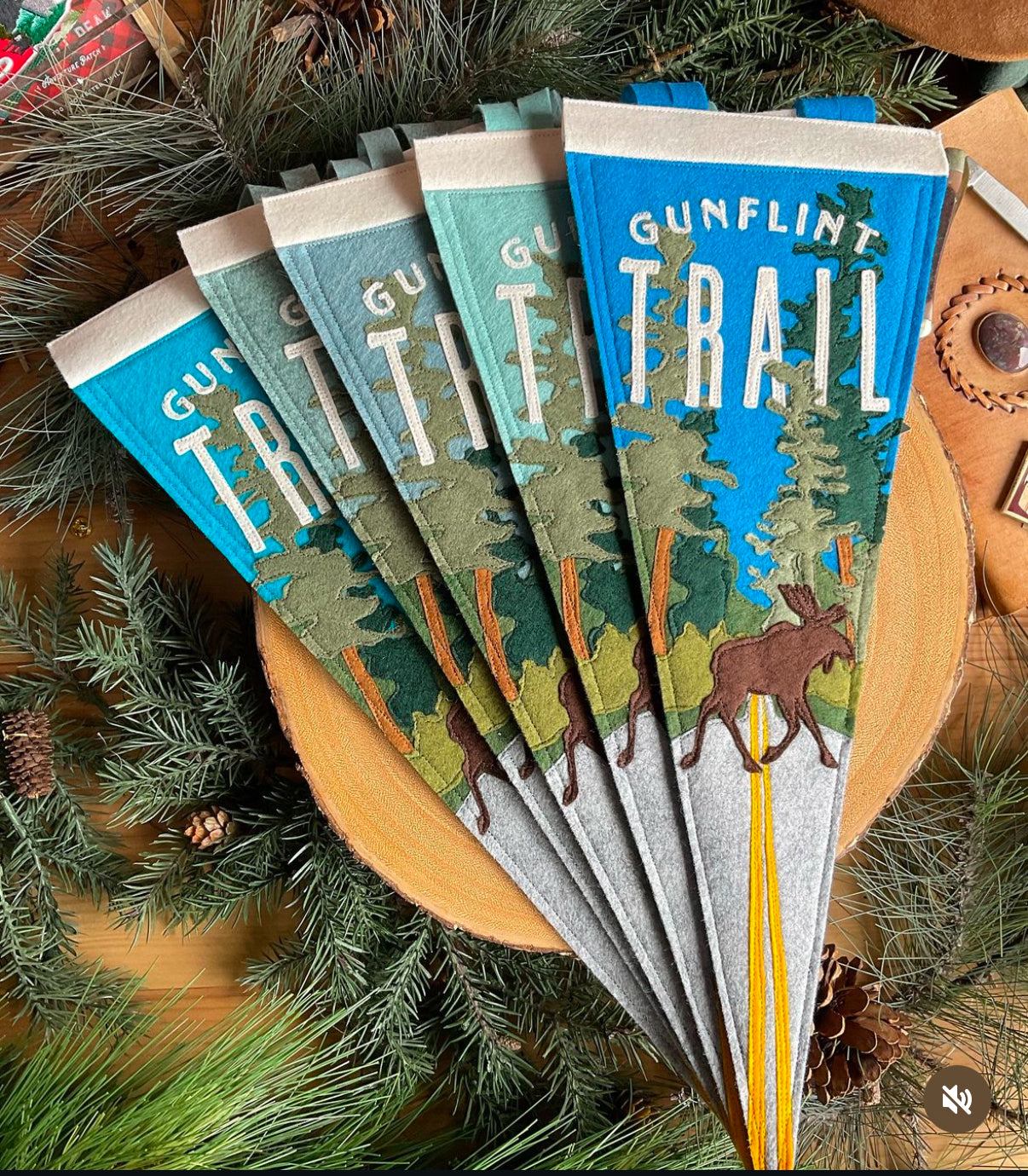 Handmade Gunflint Trail Pennant by Yoho & Co. Pennant company. This design was made exclusively for us here at The Big Lake and Lady Superior!