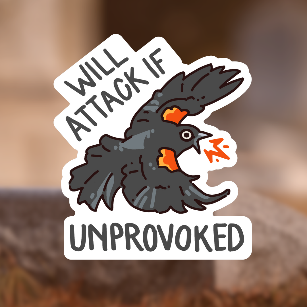 A 3-inch vinyl sticker for people who have been personally victimized by Red-winged Blackbirds. They're tough enough for outdoor use! Don't forget to clean the surface before applying the stickers.